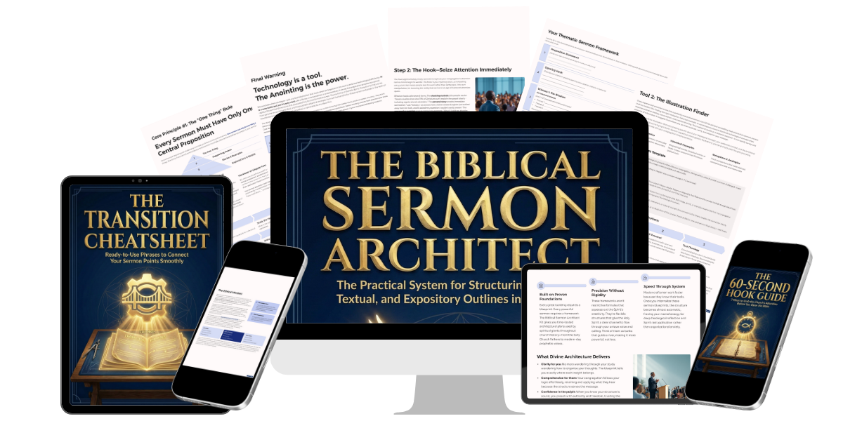 Discover how to structure God’s revelation into deep, organized, and impactful sermons in under 30 minutes — Using the 3 Blueprints of the greatest preachers in history.