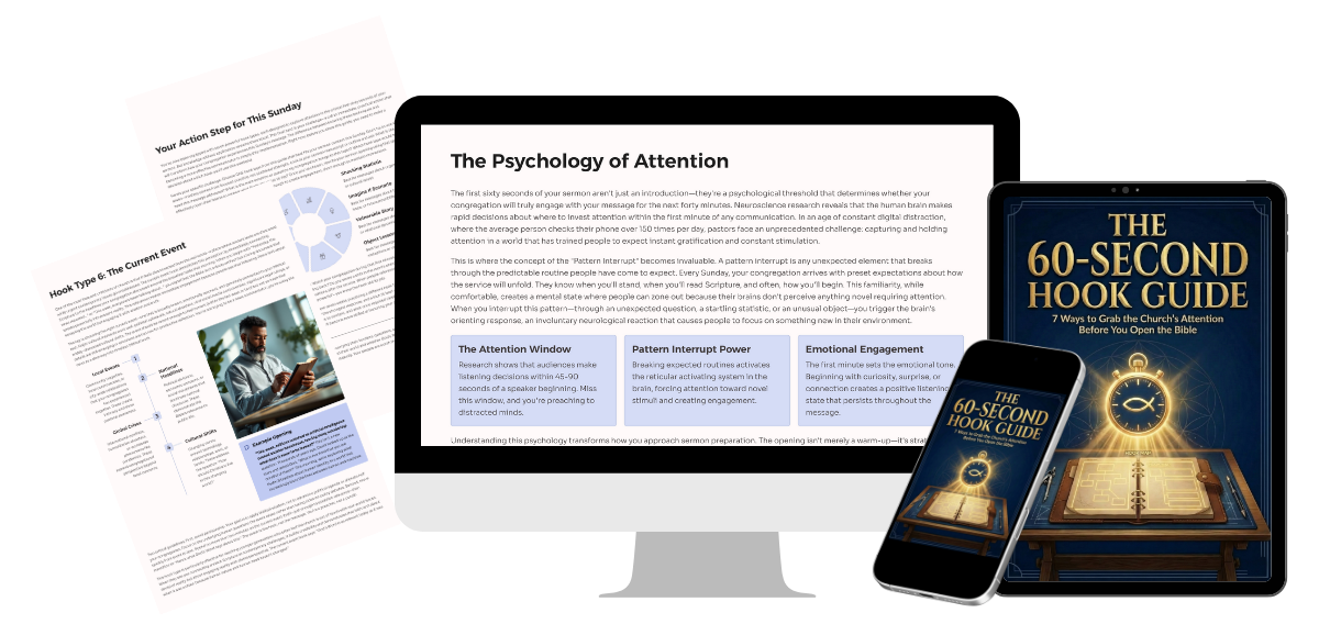 The first minute defines everything. Learn 7 fail-proof ways to capture the church’s total attention before you even open the Bible.